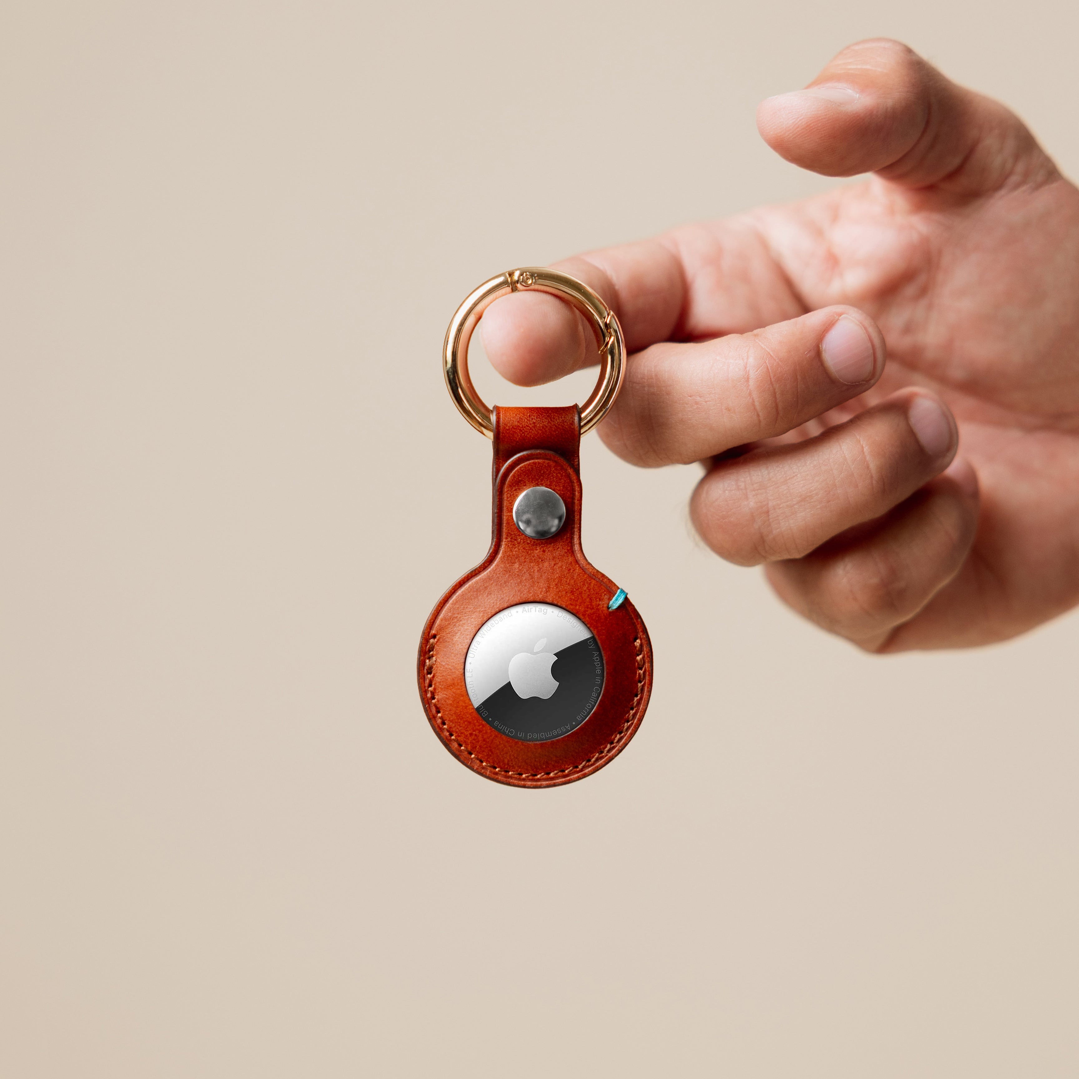 The GameDay Italian Leather AirTag Keychain - Burnt Orange