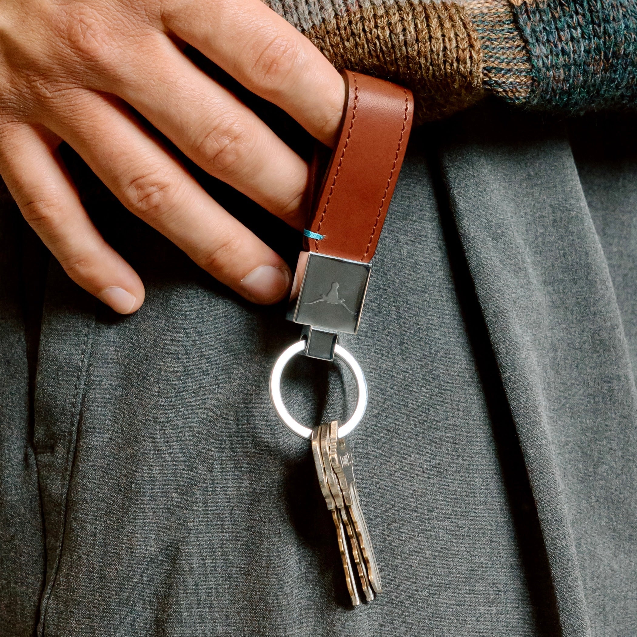 The GameDay Italian Leather Key Tag - Burnt Orange