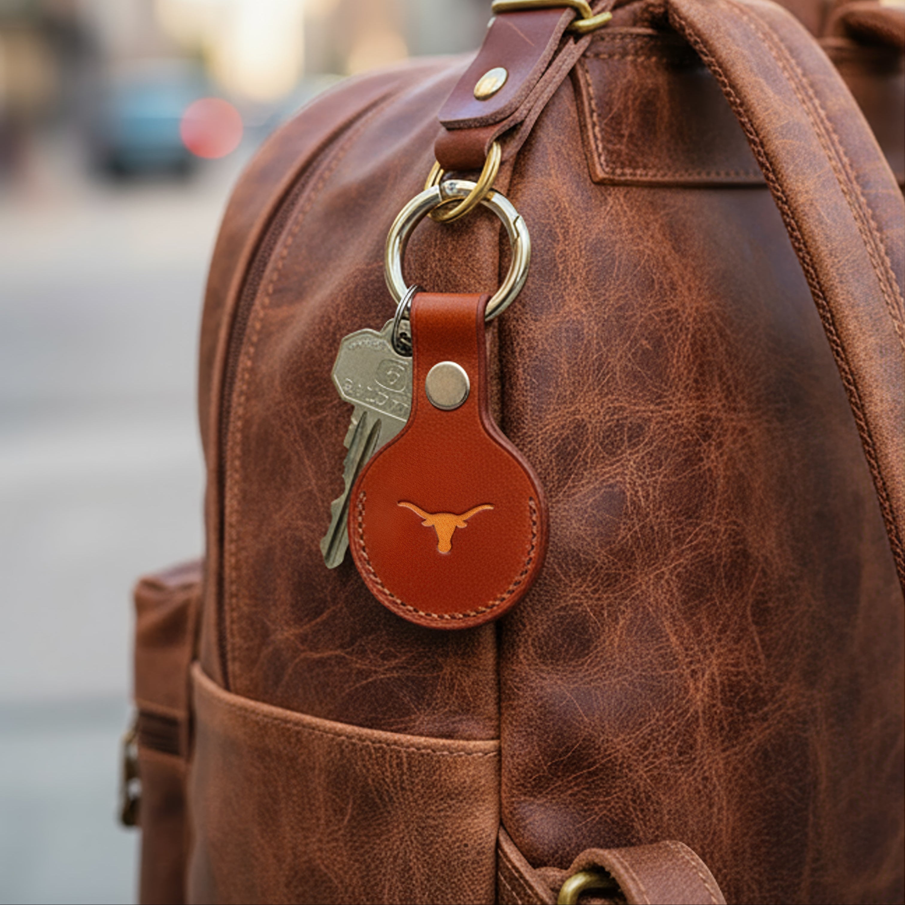 The GameDay Italian Leather AirTag Keychain - Burnt Orange