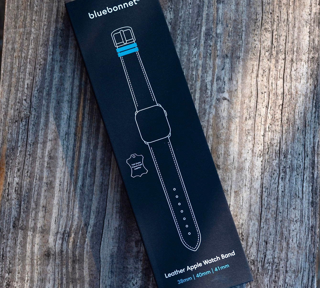 Crafted with the most luxurious and supple full-grain calf leather from France, this premium leather Apple watch band wears comfortably and develops more character over time. We pair buttery-smooth Barenia calfskin leather with Bluebonnet's signature blue loops to keep you looking stylish, whether you're at the office or on your next great adventure.