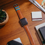 The Executive French Leather Apple Watch Band - Saddle Tan