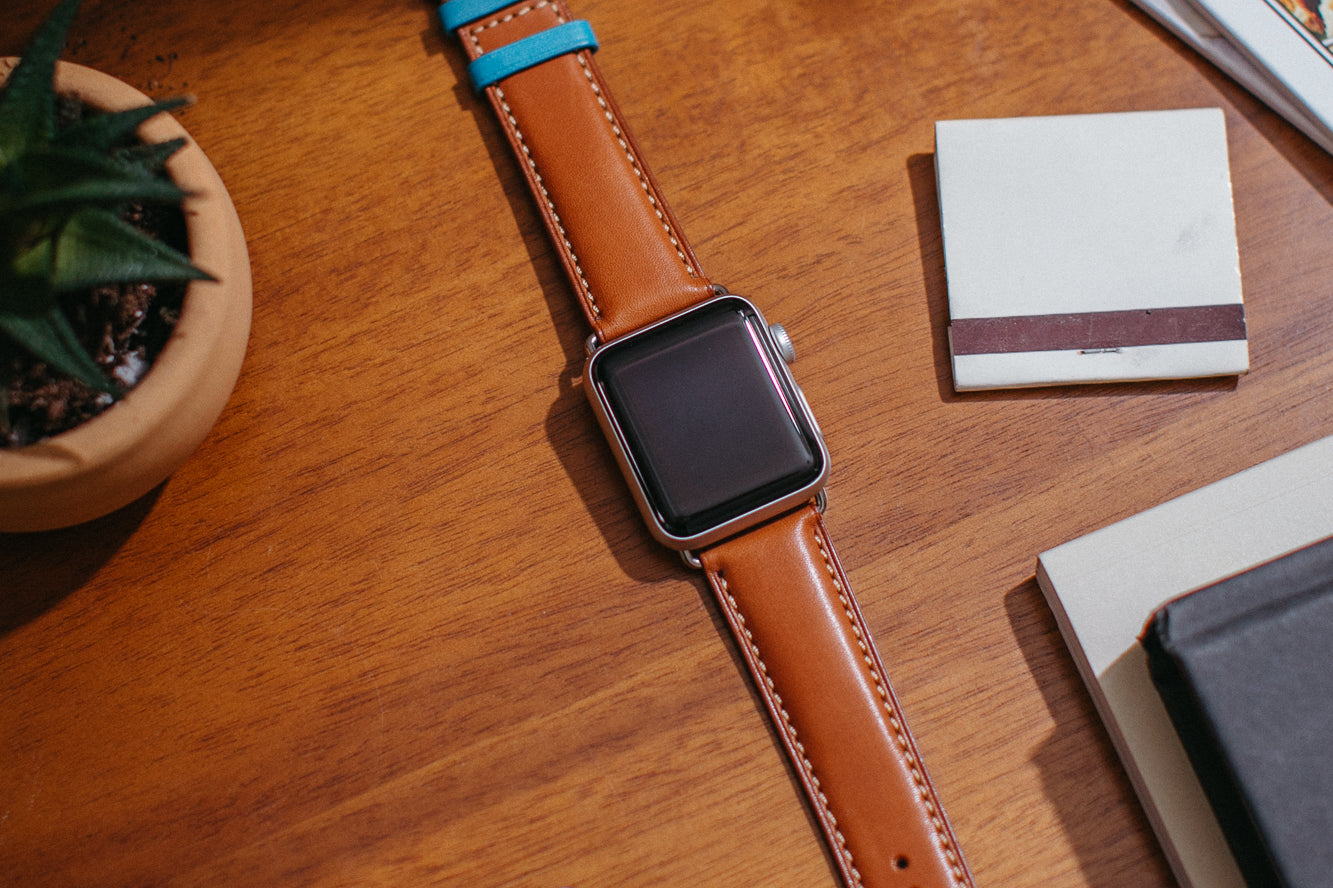 Crafted with the most luxurious and supple full-grain calfskin leather from France, this premium leather Apple watch band wears beautifully and matures into a rich patina finish that tells your unique story. We pair buttery-smooth Barenia calfskin leather with Bluebonnet's signature blue loops to keep you looking stylish, whether you're at the office or on your next great adventure.