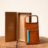 Leather iPhone 17 Pro Card Holder Case - Saddle Tan
