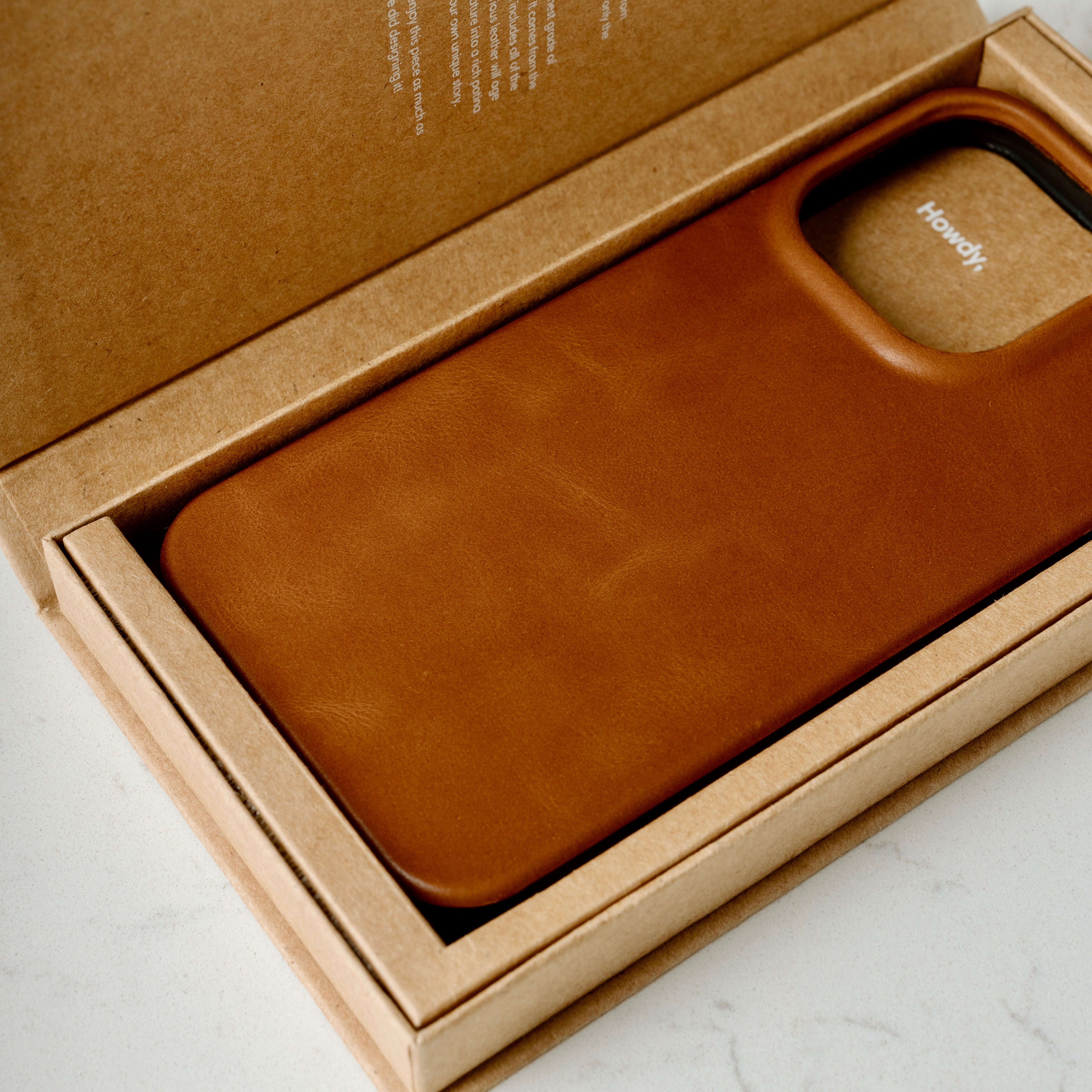 Meticulously crafted from full-grain leather, this case wraps cleanly over the edges and camera bezel. Every line, every cut—considered for timeless simplicity.