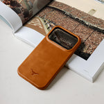 Meticulously crafted from full-grain leather, this case wraps cleanly over the edges and camera bezel. Every line, every cut—considered for timeless simplicity.