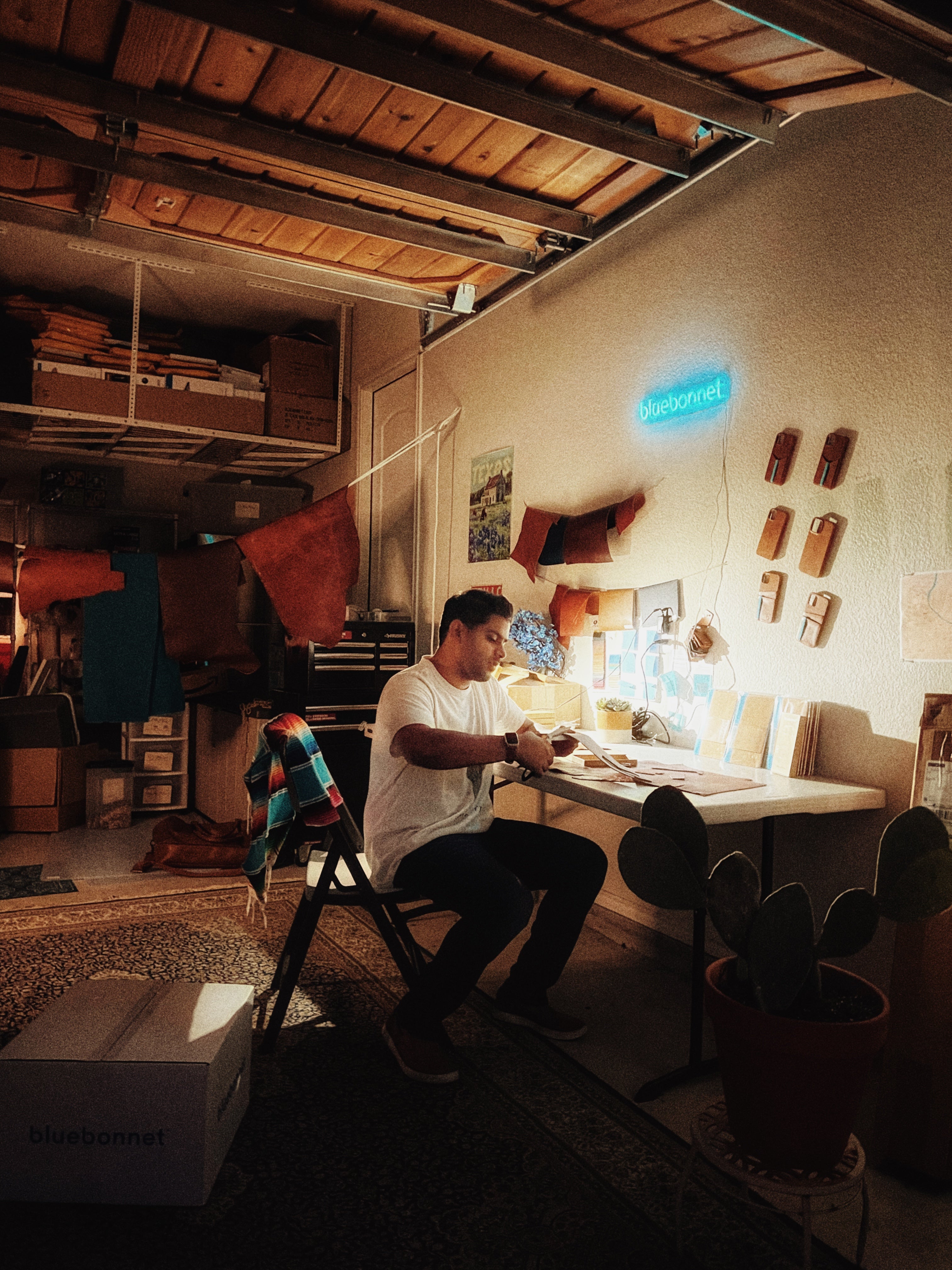 I first started Bluebonnet out of my small garage studio with just $50. I simply wanted to design beautiful everyday essentials that combined the world's best leather with a pop of blue from my favorite Texas flower.