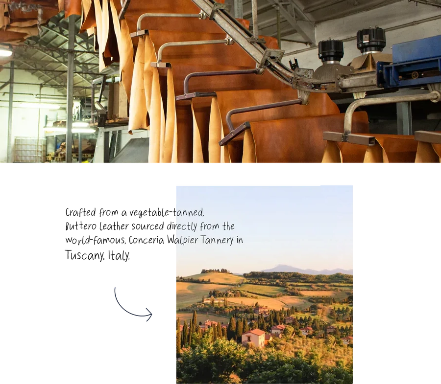This Bluebonnet piece is sourced directly from the world-renowned Conciera Walpier tannery nestled in the hills of Tuscany. The Walpier tannery has perfected the ancient art of vegetable tanning. Each item takes part in this family tradition of craftsmanship started 45 years ago by master tanner Ciampalini Gino, who represents a regional legacy that spans generations.