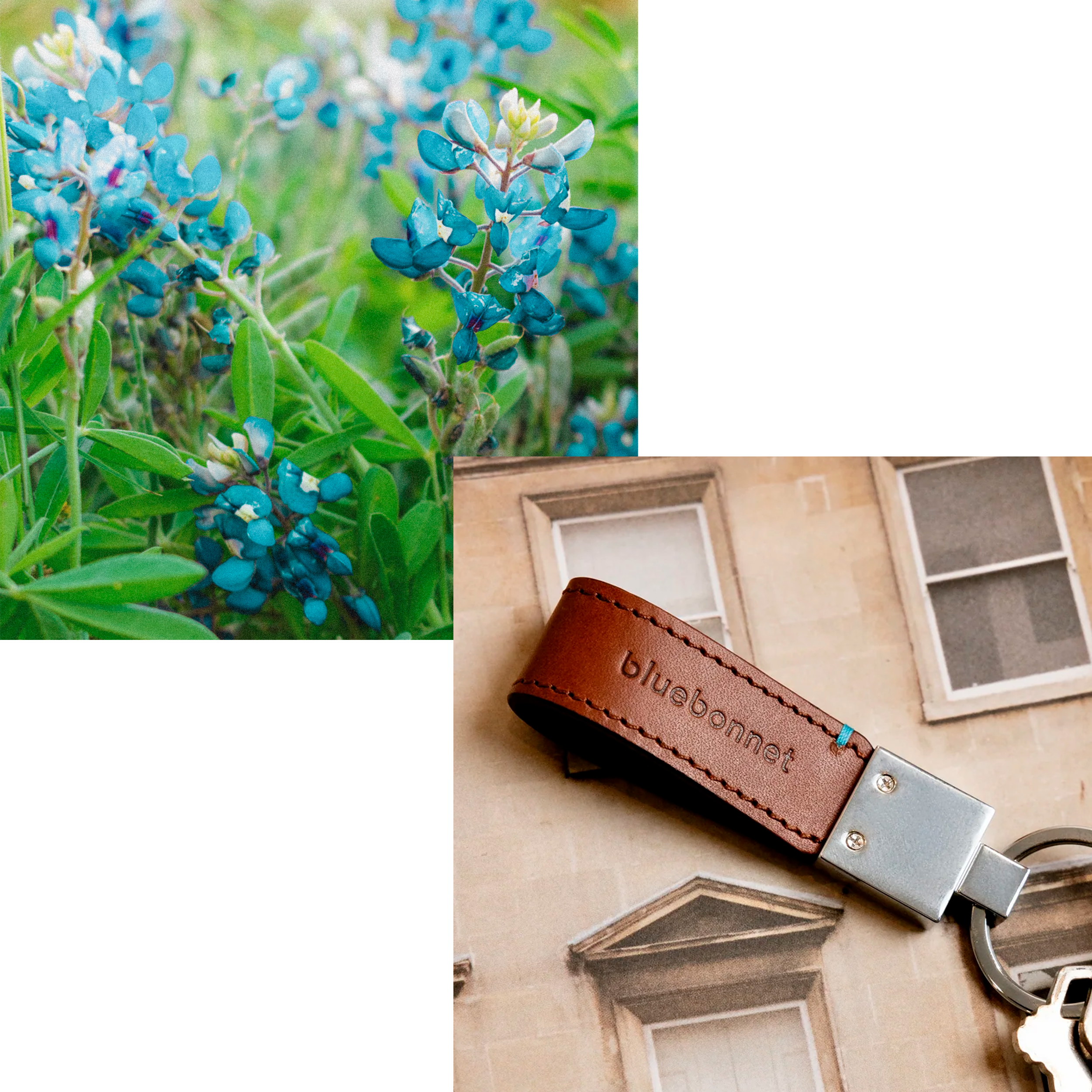 The blue imbued in each piece pays homage to the Texas state Bluebonnet flower to bring joy and color to essentials we use in our busy everyday lives.